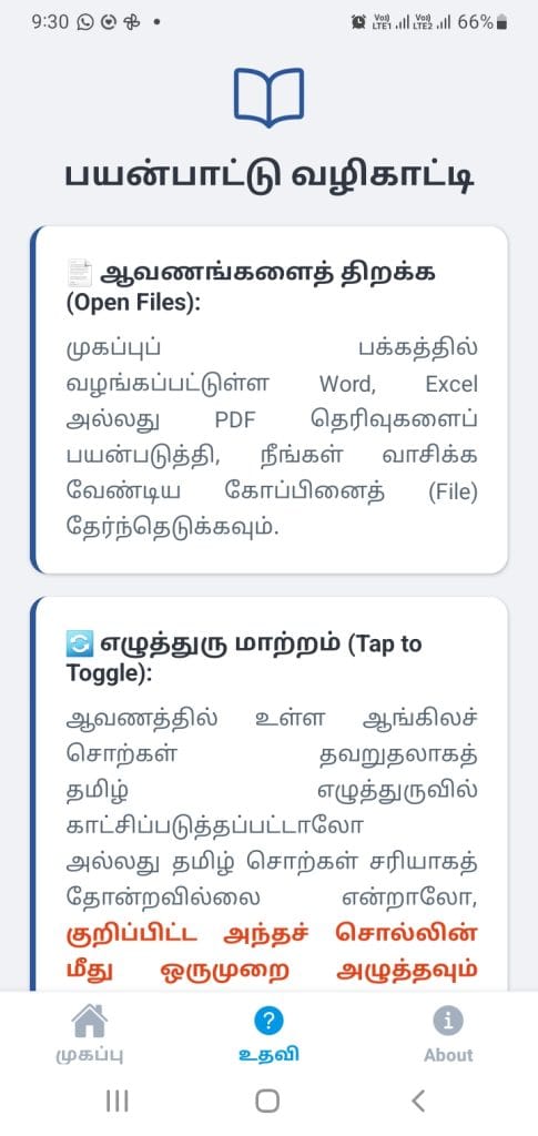 இந்த TS Doc Reader ஒரு Beta (v1.0.0) பதிப்பாகும். இதில் உள்ள மிகச் சிறந்த தொழில்நுட்ப வசதி இதன் “ஆட்டோ அப்டேட்” (Auto Update) ஆகும். இந்த ஆப்பை நீங்கள் ஒருமுறை டவுன்லோட் செய்து இன்ஸ்டால் செய்தால் போதுமானது. எதிர்காலத்தில் ஆப்பில் செய்யப்படும் புதிய வசதிகள், எழுத்துருத் திருத்தங்கள் மற்றும் டிசைன் மாற்றங்கள் அனைத்தும் இணையம் மூலமாகத் தானாகவே உங்கள் ஆப்பிற்குள் புதுப்பிக்கப்பட்டுவிடும். மீண்டும் புதிதாக டவுன்லோட் செய்ய வேண்டியதில்லை.
